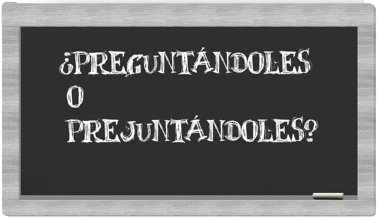 En la particularidad de la relación entre los términos preguntándoles y prejuntándoles, no hay lugar para la incertidumbre, puesto que únicamente preguntándoles se encuentra registrado de manera adecuada. Por otro lado, prejuntándoles no figura en el compendio de la Real Academia Española.