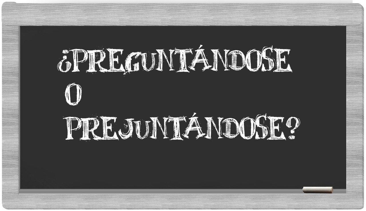 En la particular situación que involucra los términos preguntándose y prejuntándose, no deberías tener ninguna vacilación, puesto que únicamente preguntándose se encuentra correctamente formulada. Por otro lado, prejuntándose no se halla registrada en el Diccionario de la Real Academia de la Lengua.