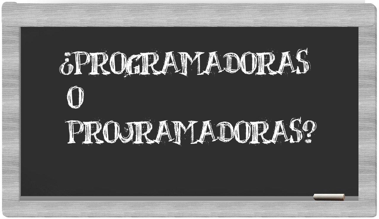 Cuando te enfrentes a la comparación entre programadoras y projramadoras, no deberías titubear, pues únicamente programadoras se encuentra registrada de manera adecuada. Por el contrario, projramadoras no figura en el Diccionario de la Real Academia Española.