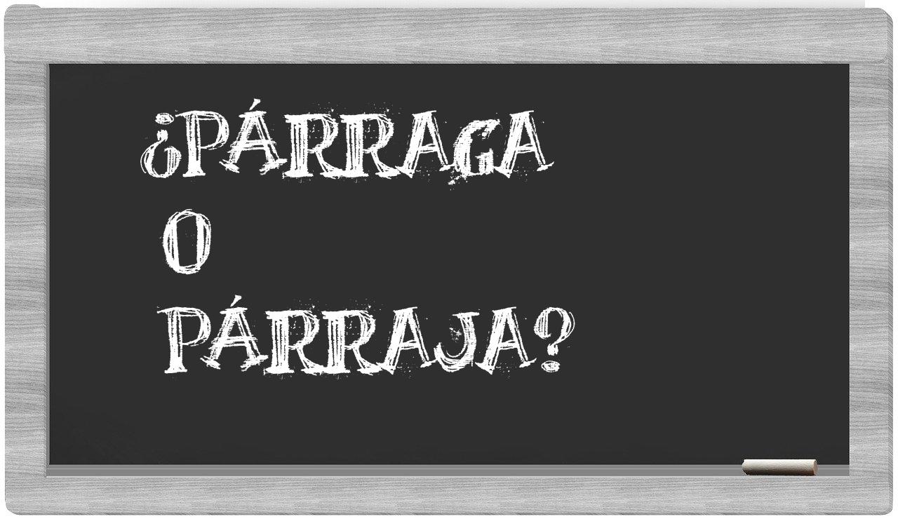 Cuando se presenta la disyuntiva entre párraga y párraja, es fundamental que no haya lugar a la incertidumbre, puesto que únicamente párraga se encuentra debidamente registrada en el Diccionario de la Real Academia Española, mientras que párraja no forma parte de su léxico oficial.