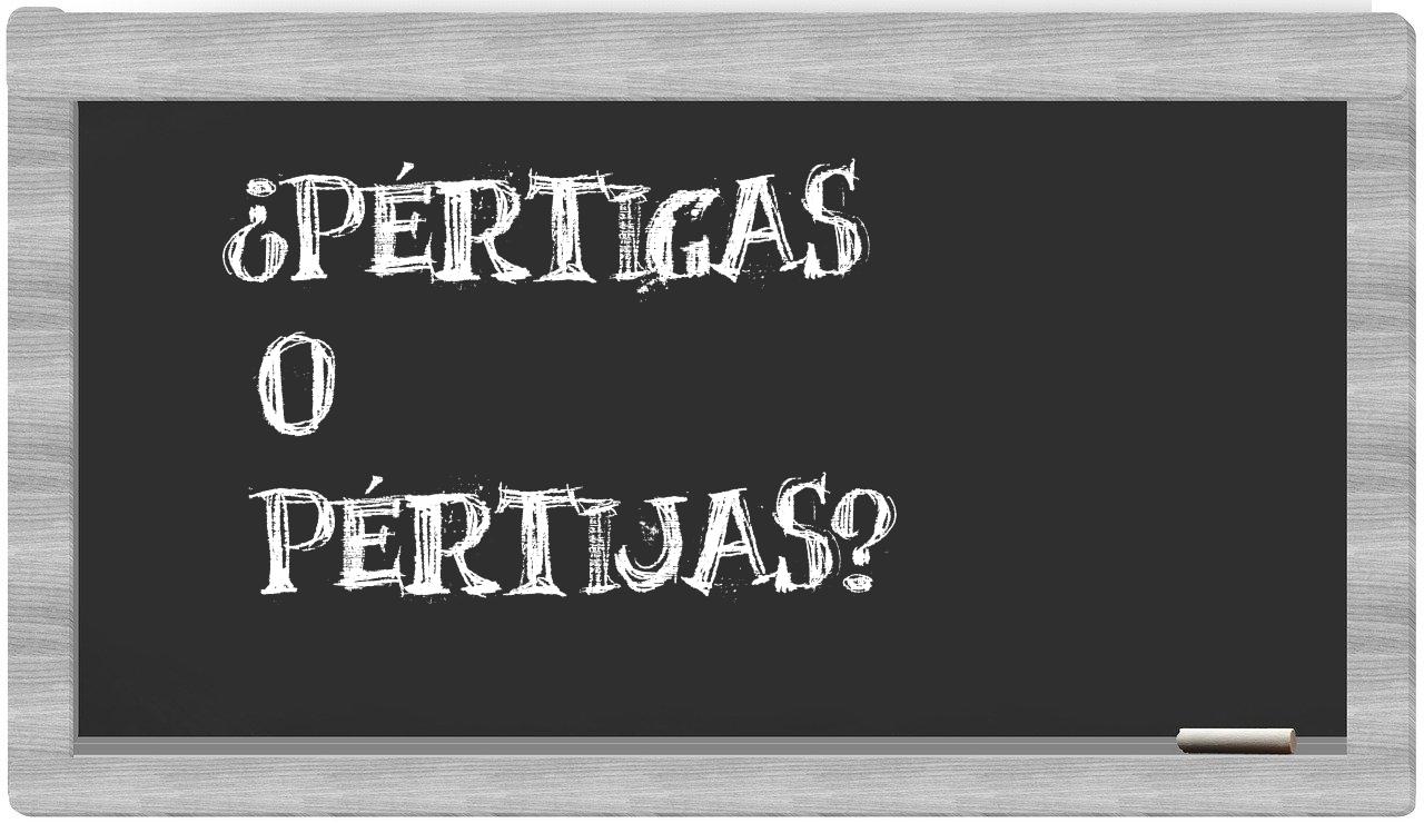 En la situación particular que involucra los términos pértigas y pértijas, no deberías tener ningún tipo de incertidumbre, puesto que únicamente pértigas se encuentra adecuadamente formulada. Por otro lado, pértijas carece de reconocimiento en el Diccionario de la Real Academia Española.