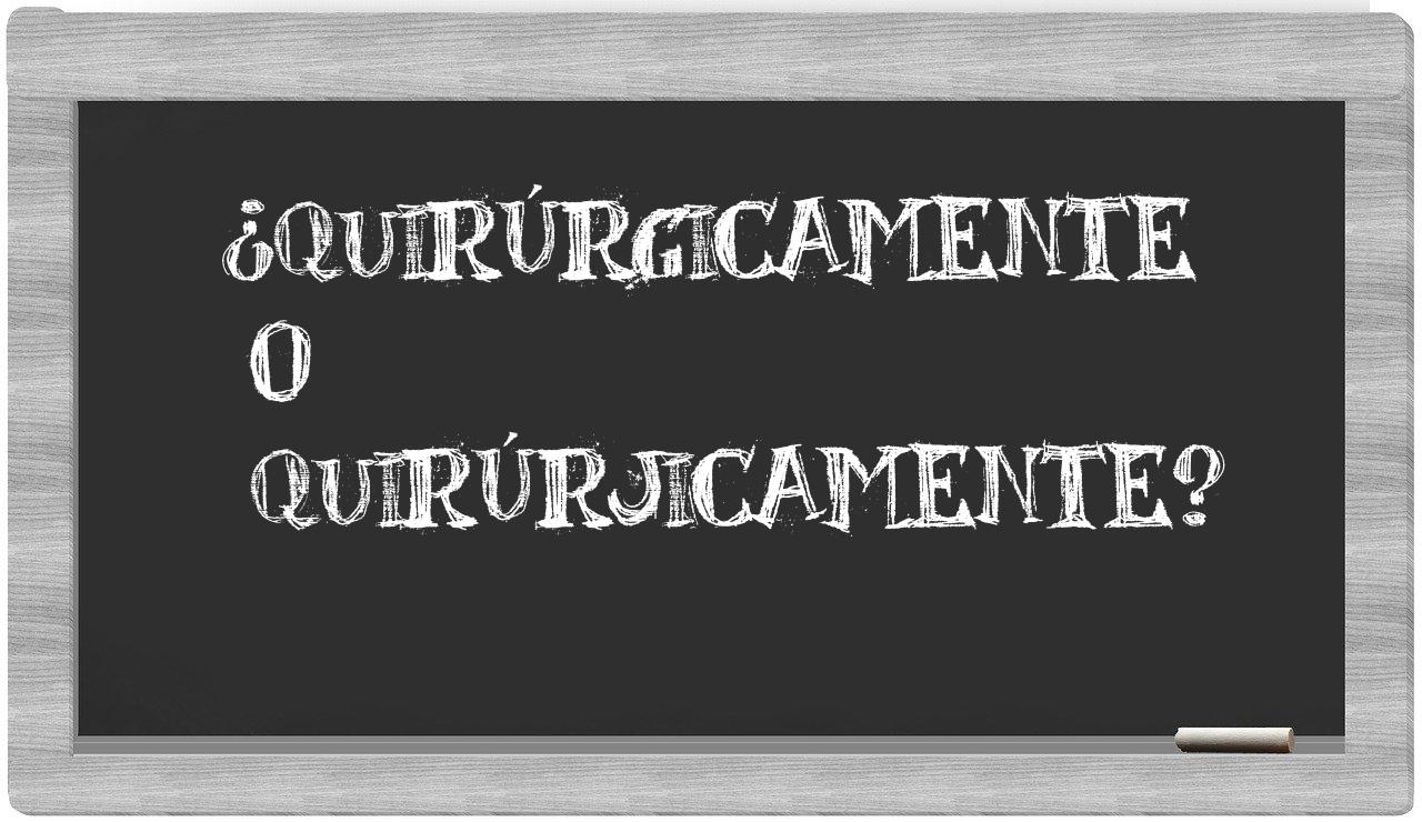 En la situación específica que involucra a quirúrgicamente y quirúrjicamente, la certeza es fundamental, puesto que únicamente quirúrgicamente se encuentra aceptada y registrada adecuadamente. Por su parte, quirúrjicamente carece de presencia en el Diccionario de la Real Academia Española.