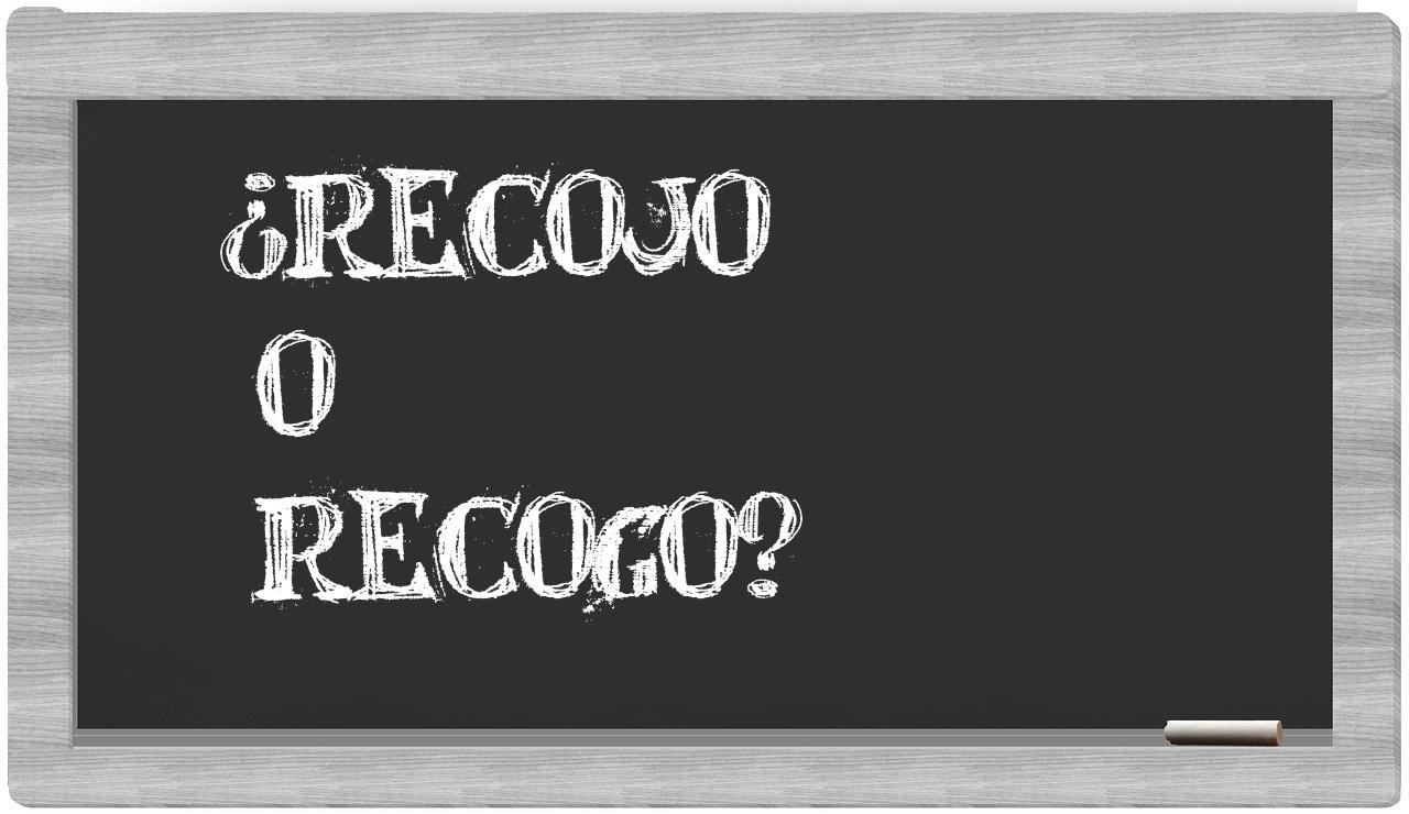 En la situación particular que se presenta entre recojo y recogo, nunca deberías titubear, puesto que únicamente recojo está correctamente redactada. La palabra recogo no se encuentra registrada en el Diccionario de la Real Academia Española.