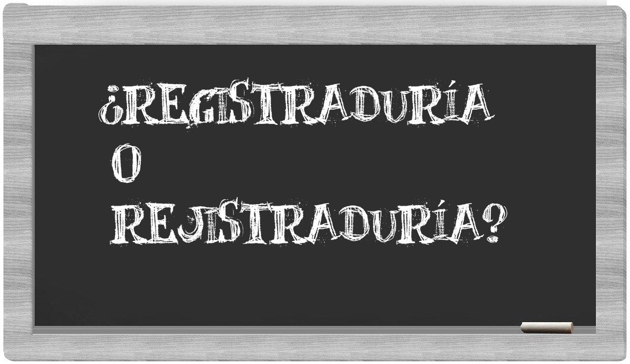 Al considerar las opciones entre registraduría y rejistraduría, no hay lugar para la incertidumbre, puesto que únicamente registraduría es la forma correcta; cabe destacar que rejistraduría no se encuentra registrada en el Diccionario de la Real Academia Española.