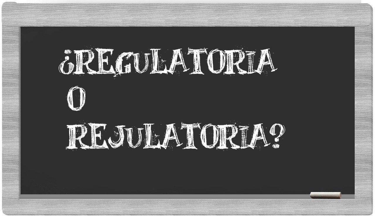 A la hora de elegir entre regulatoria y rejulatoria, es fundamental que tengas claridad, puesto que solo regulatoria es la opción que se encuentra debidamente registrada. Por su parte, rejulatoria no se halla en el léxico de la Real Academia Española.