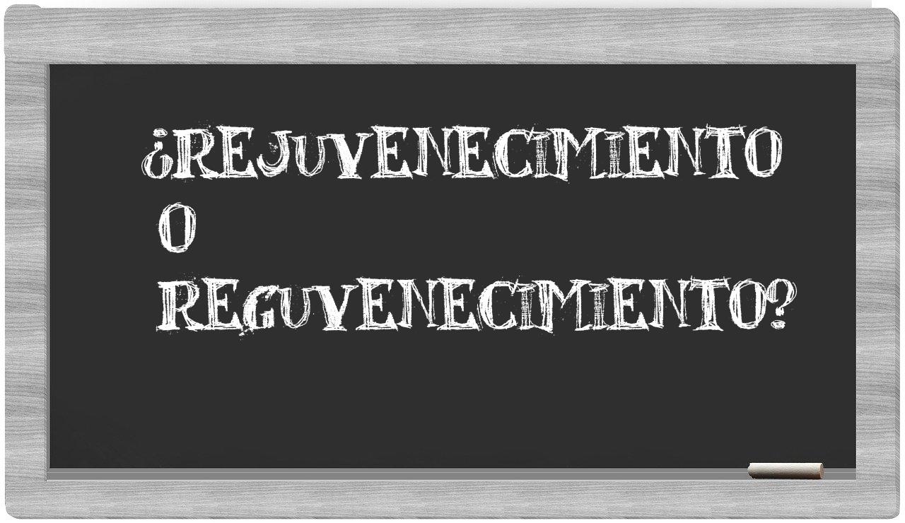 En la situación particular entre los términos rejuvenecimiento y reguvenecimiento, no hay motivo para titubear, puesto que únicamente rejuvenecimiento es la opción válida. El término reguvenecimiento no está registrado en el Diccionario de la Real Academia Española.