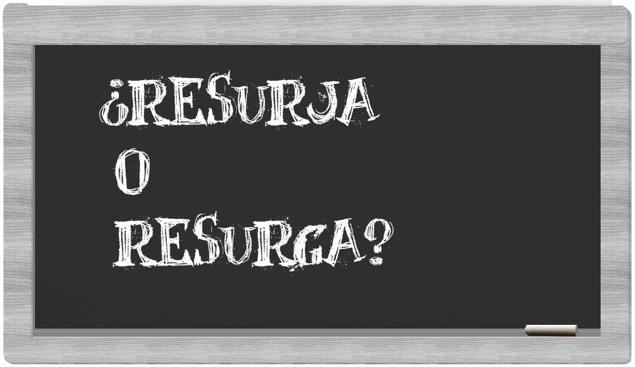 Cuando se trata de discernir entre los términos resurja y resurga, no debería existir la más mínima vacilación, puesto que únicamente resurja se encuentra correctamente formulada; en cambio, resurga no figura en el repertorio del Diccionario de la Real Academia Española.