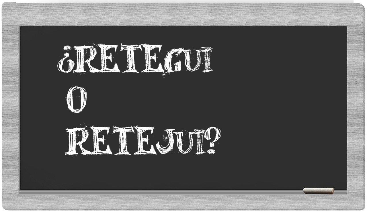 En la situación específica entre los términos retegui y retejui, nunca deberías vacilar, puesto que únicamente retegui se encuentra correctamente formulada. La palabra retejui no se halla registrada en el Diccionario de la Real Academia Española.