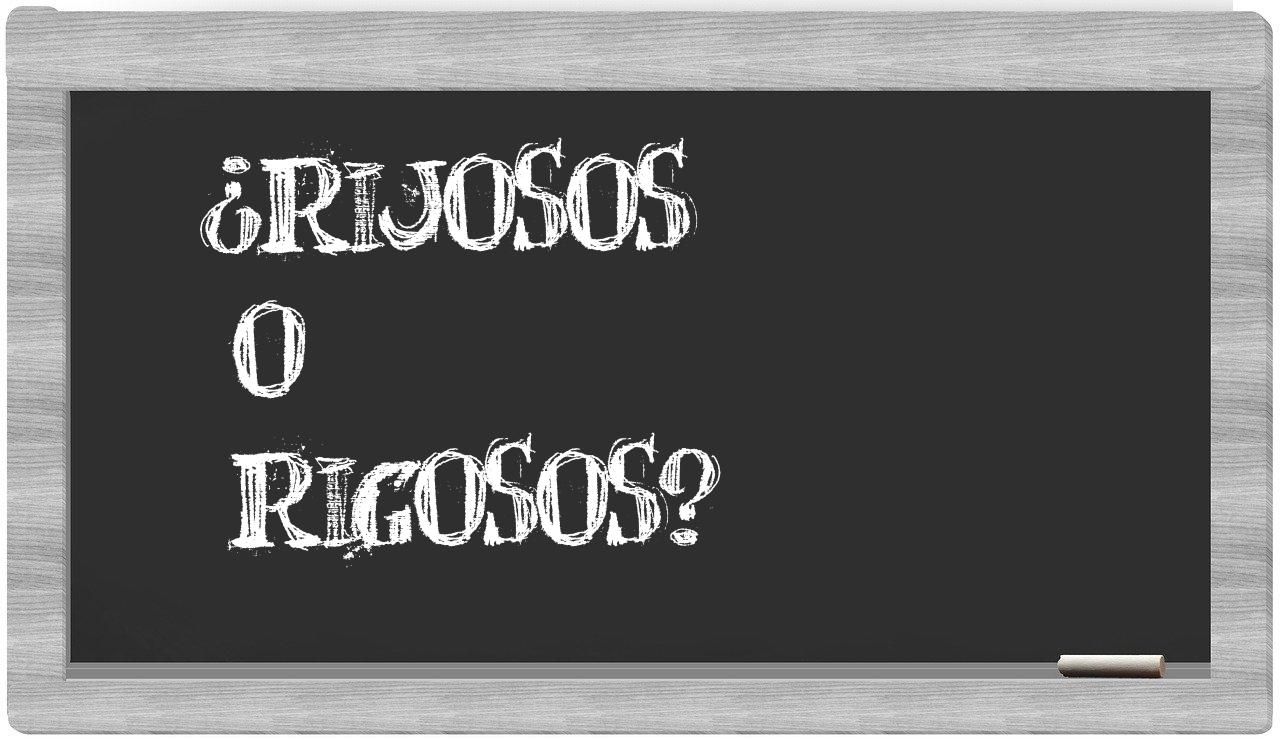 Cuando se trata de la comparación entre rijosos y rigosos, la elección es clara y no debería generar ninguna incertidumbre, puesto que exclusivamente rijosos se encuentra debidamente registrada en el Diccionario de la Real Academia de la Lengua, mientras que rigosos carece de reconocimiento en su obra.