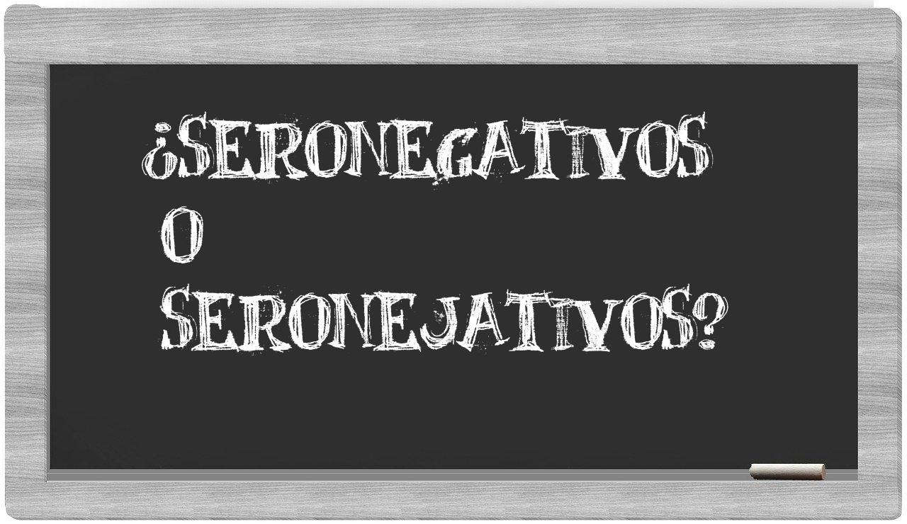 Cuando se trata de la interacción entre seronegativos y seronejativos, no deberías titubear ni un segundo, puesto que únicamente seronegativos es la opción que se encuentra debidamente registrada. En cambio, seronejativos no forma parte del repertorio del Diccionario de la Real Academia Española.