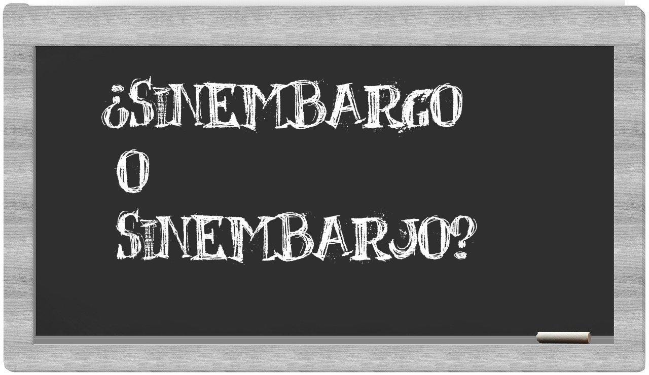 Cuando se trata de las expresiones sinembargo y sinembarjo, es fundamental no titubear, porque únicamente sinembargo es la que se presenta de manera adecuada. La palabra sinembarjo no se encuentra registrada en el Diccionario de la Real Academia Española.