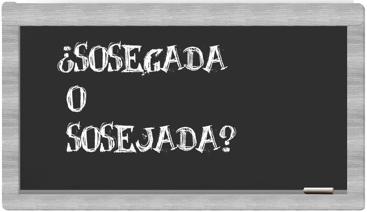 Cuando se trata de la distinción entre sosegada y sosejada, no caben vacilaciones, pues solamente sosegada es el término adecuado; de hecho, sosejada no figura en el repertorio del Diccionario de la Real Academia Española.