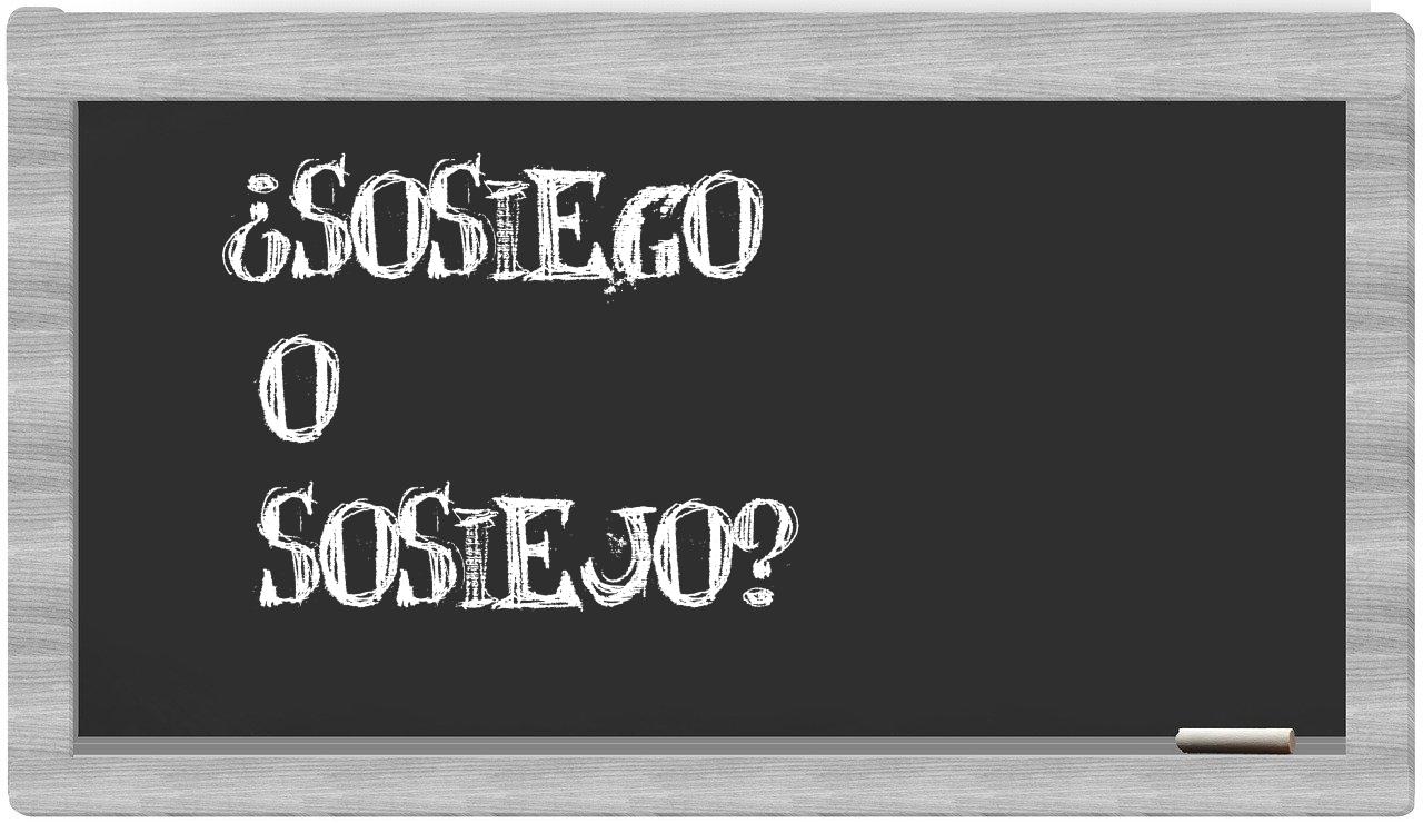 En lo que respecta a la relación entre sosiego y sosiejo, no deberías tener ninguna incertidumbre, puesto que únicamente sosiego se presenta como la opción adecuada. Por otro lado, sosiejo no se encuentra registrada en el Diccionario de la Real Academia Española.