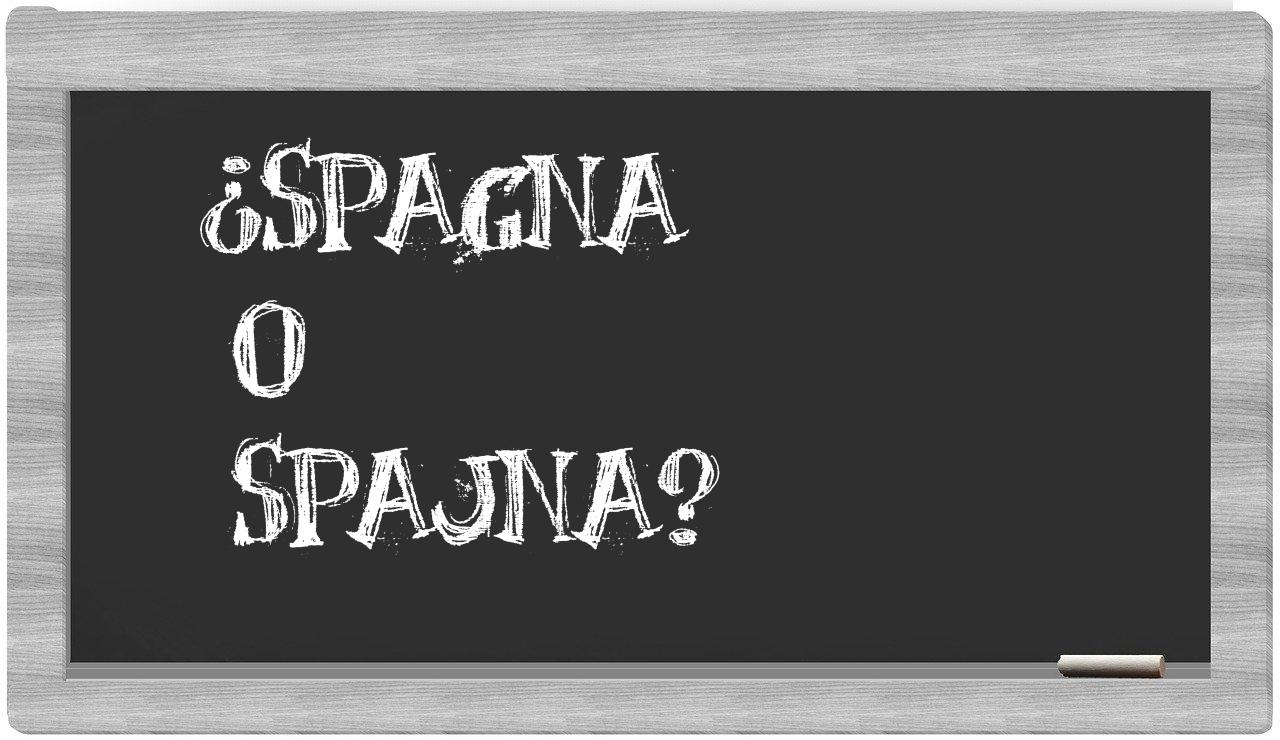 Cuando se trata de la distinción entre spagna y spajna, no hay motivo para titubear, porque únicamente spagna está correctamente formulada. Por otro lado, spajna no se encuentra registrada en el Diccionario de la Real Academia Española.