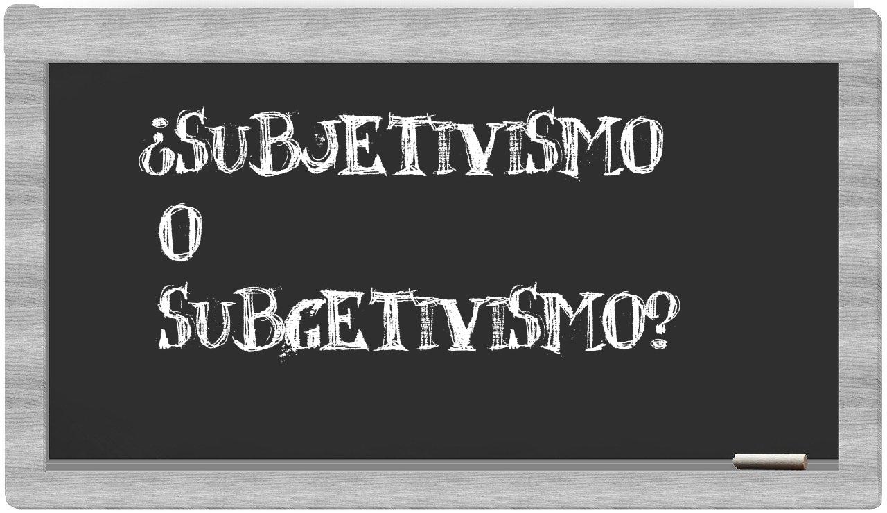 Cuando se trata de discernir entre subjetivismo y subgetivismo, la decisión es clara y no deja lugar a confusiones, puesto que únicamente subjetivismo se encuentra debidamente registrada en el Diccionario de la Real Academia Española, mientras que subgetivismo no figura en su autoridad lingüística.