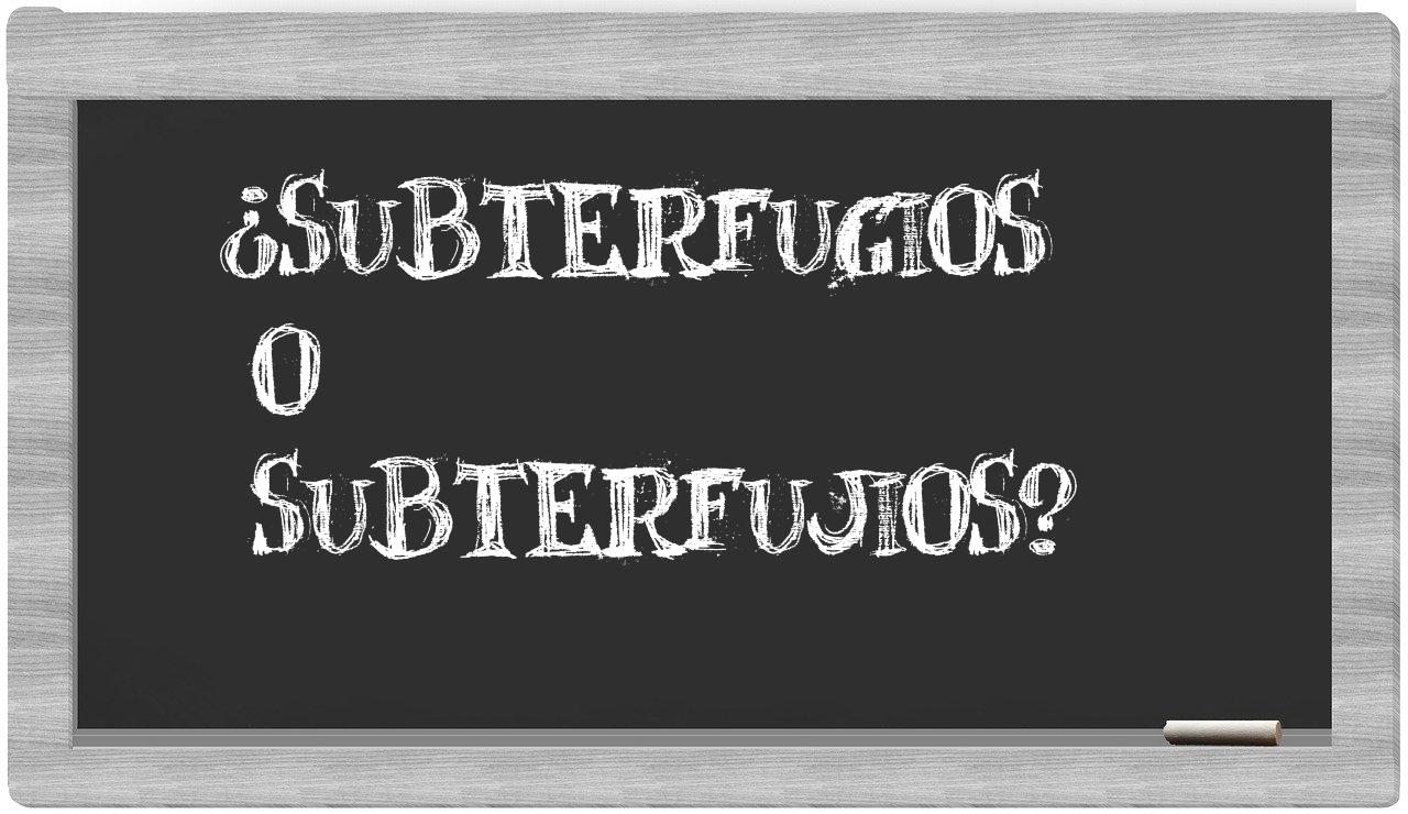 Cuando se trate de la distinción entre subterfugios y subterfujios, la elección debería ser evidente, puesto que únicamente subterfugios es la forma adecuada. La palabra subterfujios no se encuentra registrada en el Diccionario de la Real Academia Española.