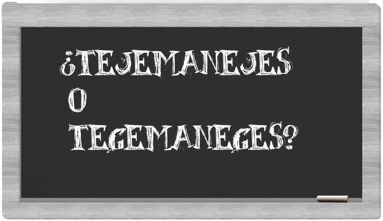 Cuando se presenta la disyuntiva entre tejemanejes y tegemaneges, es esencial que no te sientas indeciso, puesto que únicamente tejemanejes se encuentra debidamente registrada como correcta. Por otro lado, tegemaneges no se halla en el prestigioso Diccionario de la Real Academia Española.