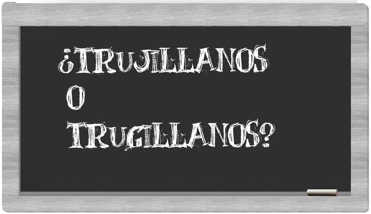 No deberías vacilar en la elección entre trujillanos y trugillanos, puesto que únicamente trujillanos está correctamente expresada, mientras que trugillanos carece de reconocimiento en el Diccionario de la Real Academia Española.