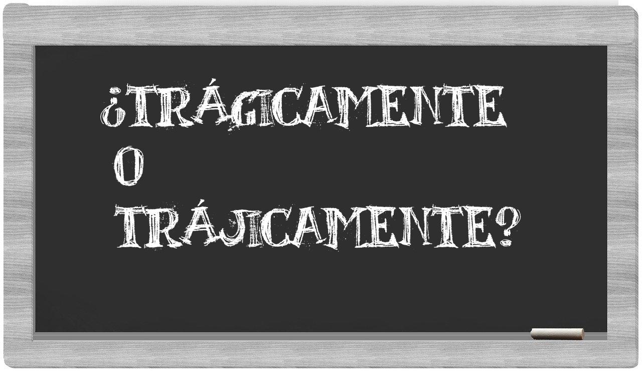 En la situación particular que involucra los términos trágicamente y trájicamente, no deberías tener ningún tipo de incertidumbre, puesto que únicamente trágicamente se encuentra adecuadamente formulada. Por otro lado, trájicamente carece de reconocimiento en el Diccionario de la Real Academia Española.
