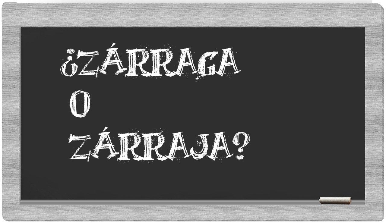 En la particular situación que involucra los términos zárraga y zárraja, no deberías experimentar incertidumbre alguna, puesto que únicamente zárraga es la forma correcta y aceptada; por su parte, zárraja no figura en el Diccionario de la Real Academia Española.