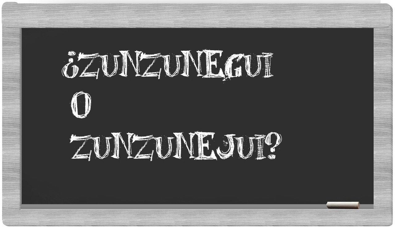Cuando se trata de la distinción entre zunzunegui y zunzunejui, no hay lugar a la incertidumbre, puesto que únicamente zunzunegui se encuentra debidamente registrada en el Diccionario de la Real Academia Española, mientras que zunzunejui no tiene cabida en su repertorio lexicográfico.