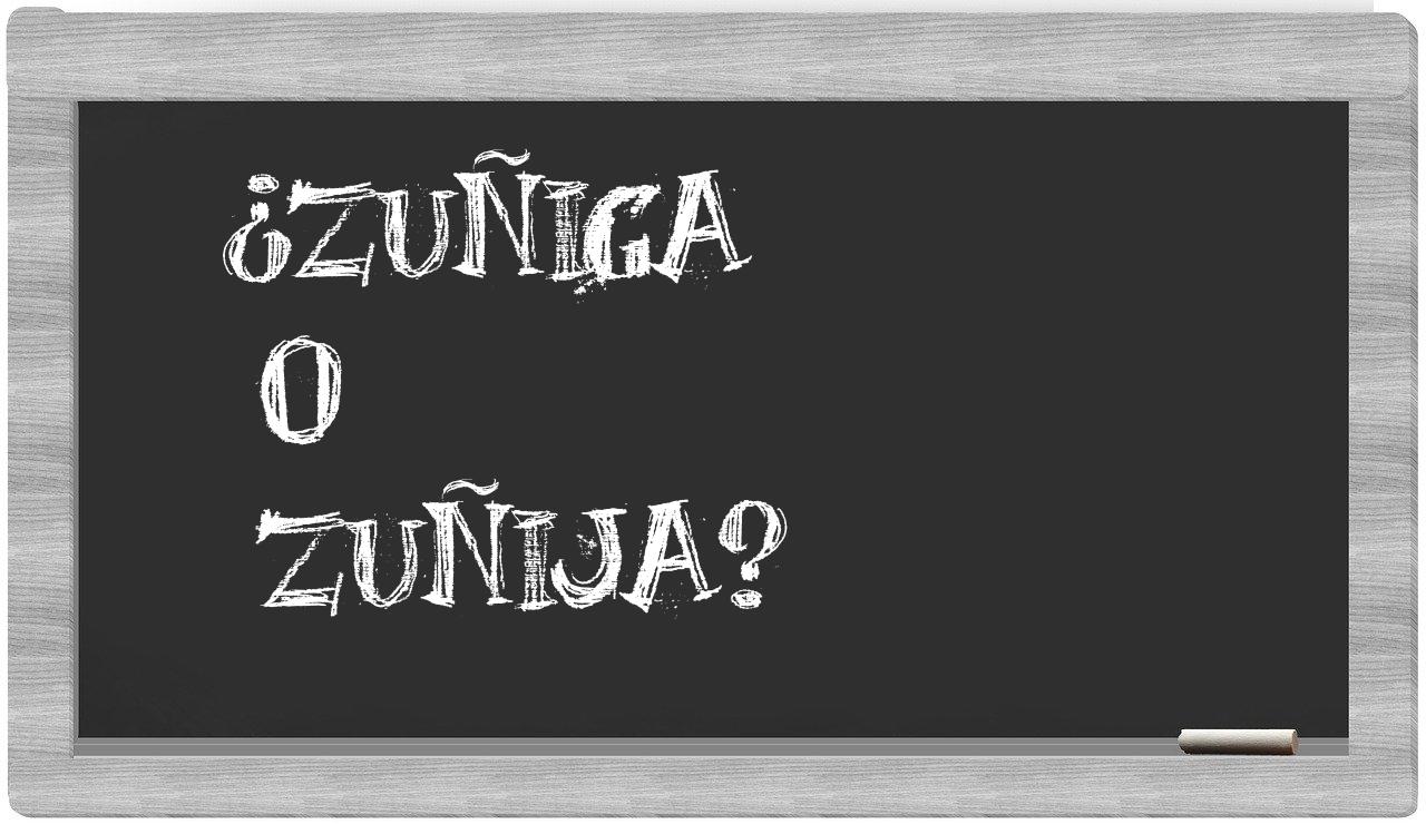 En la situación particular que involucra los términos zuñiga y zuñija, nunca deberías titubear, porque únicamente zuñiga se encuentra debidamente redactado. Por otro lado, zuñija no figura en el léxico aceptado por la Real Academia Española.